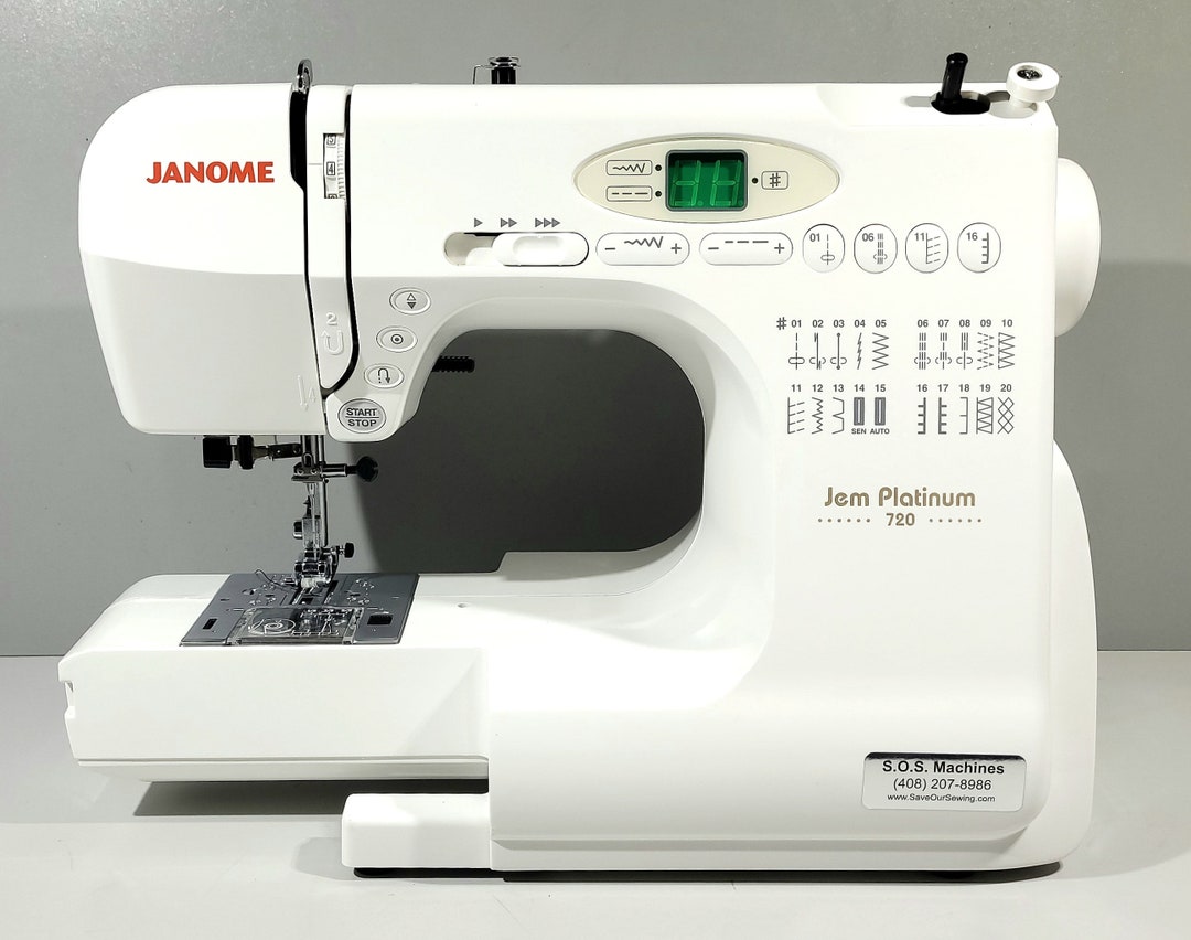 Janome Jem Platinum Superportable Computerized Sewing Machine Mod. 720 Proserviced W/2yr